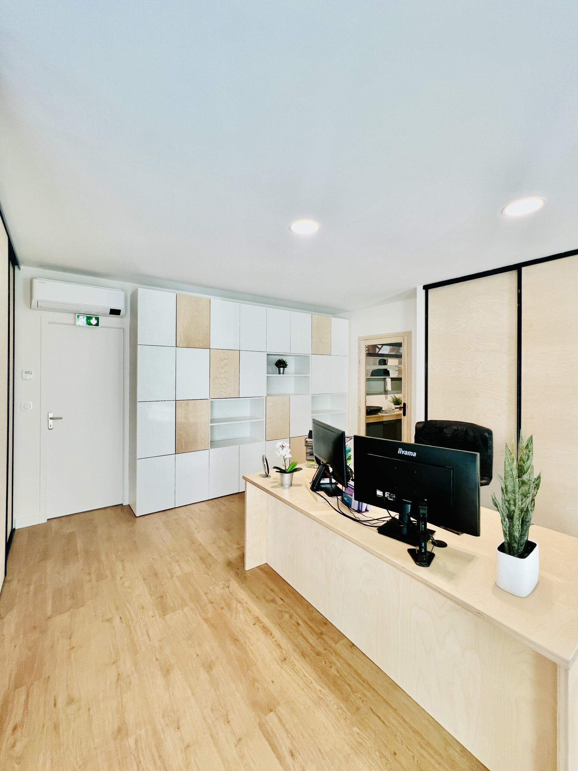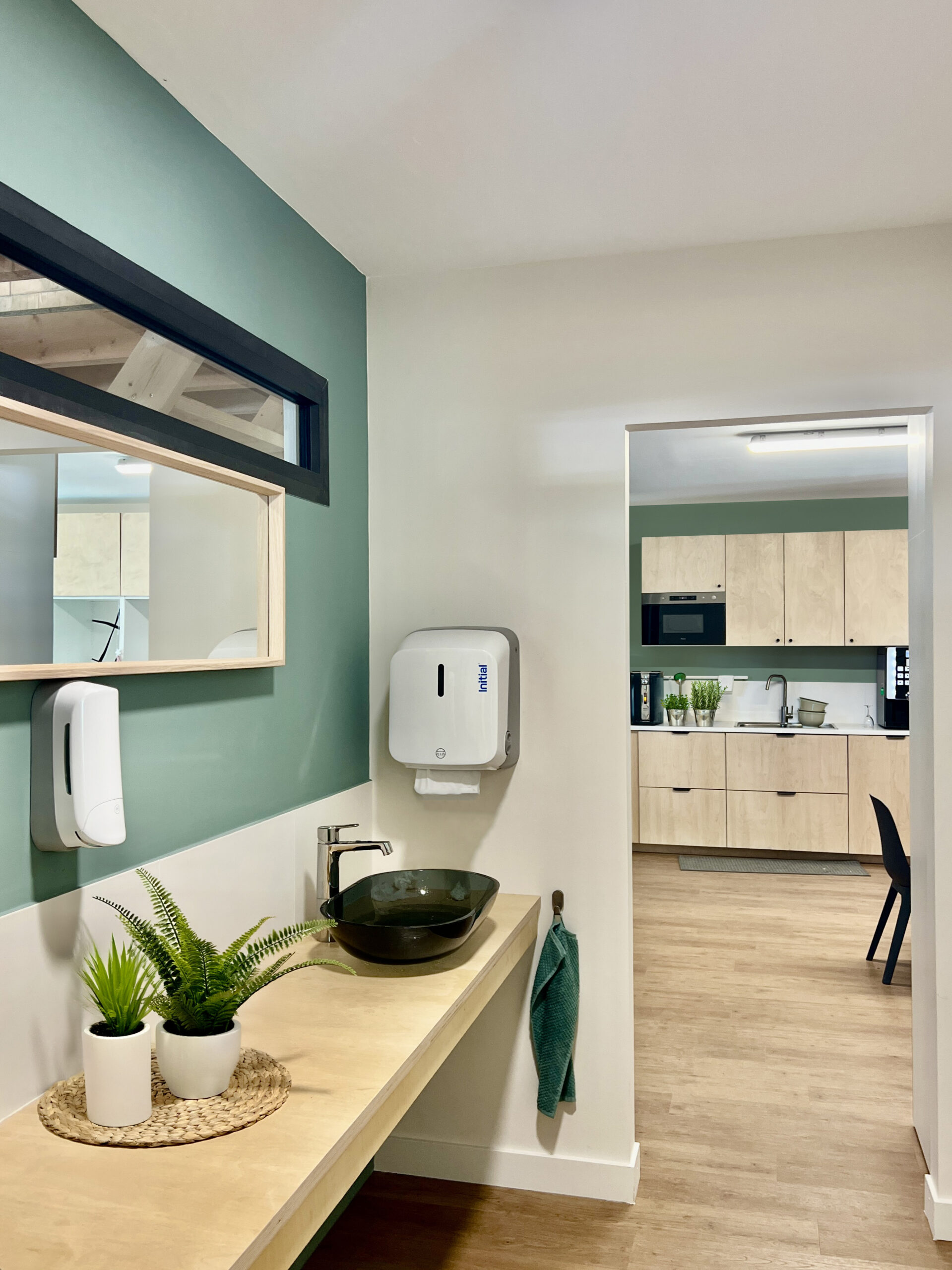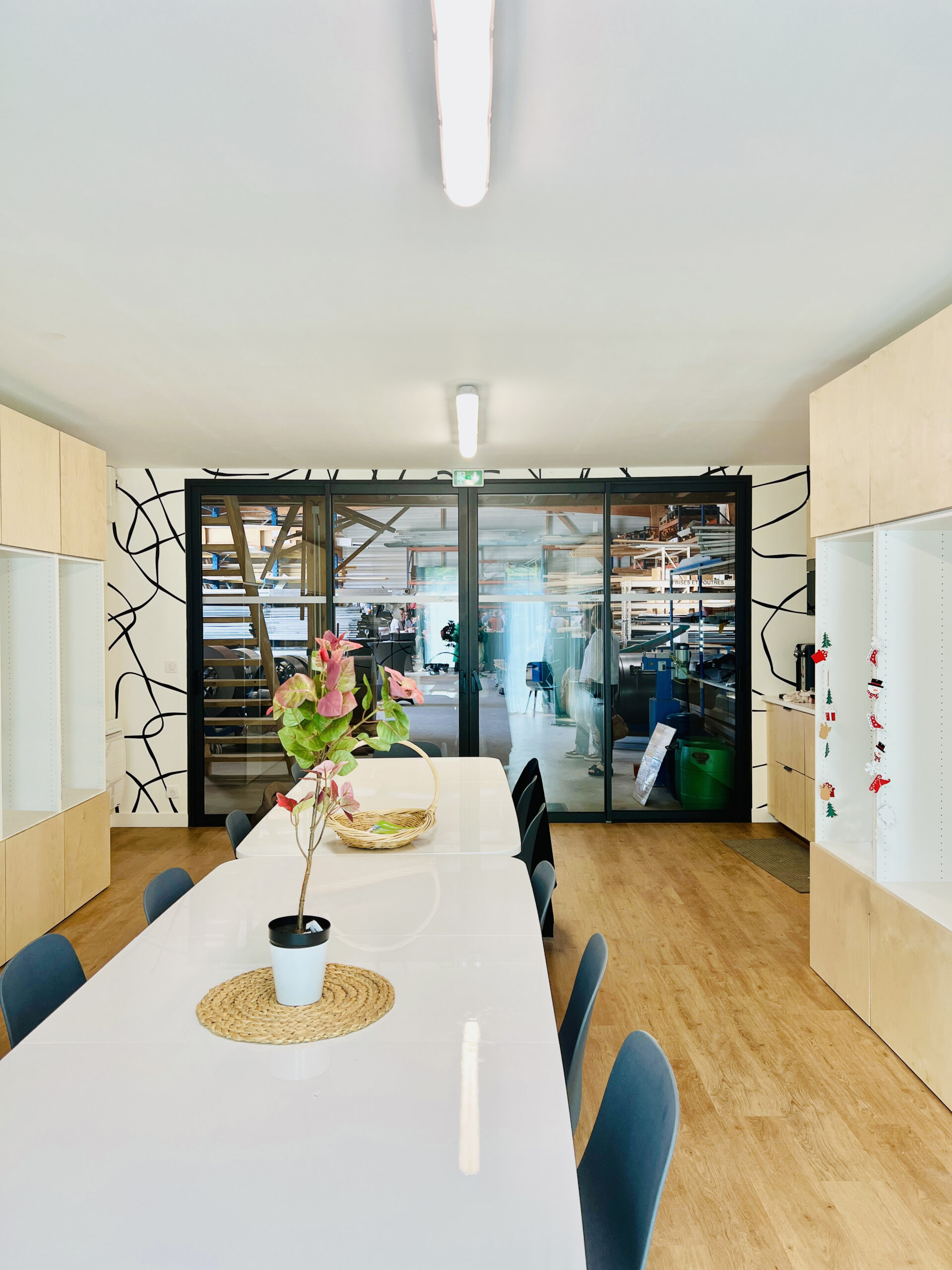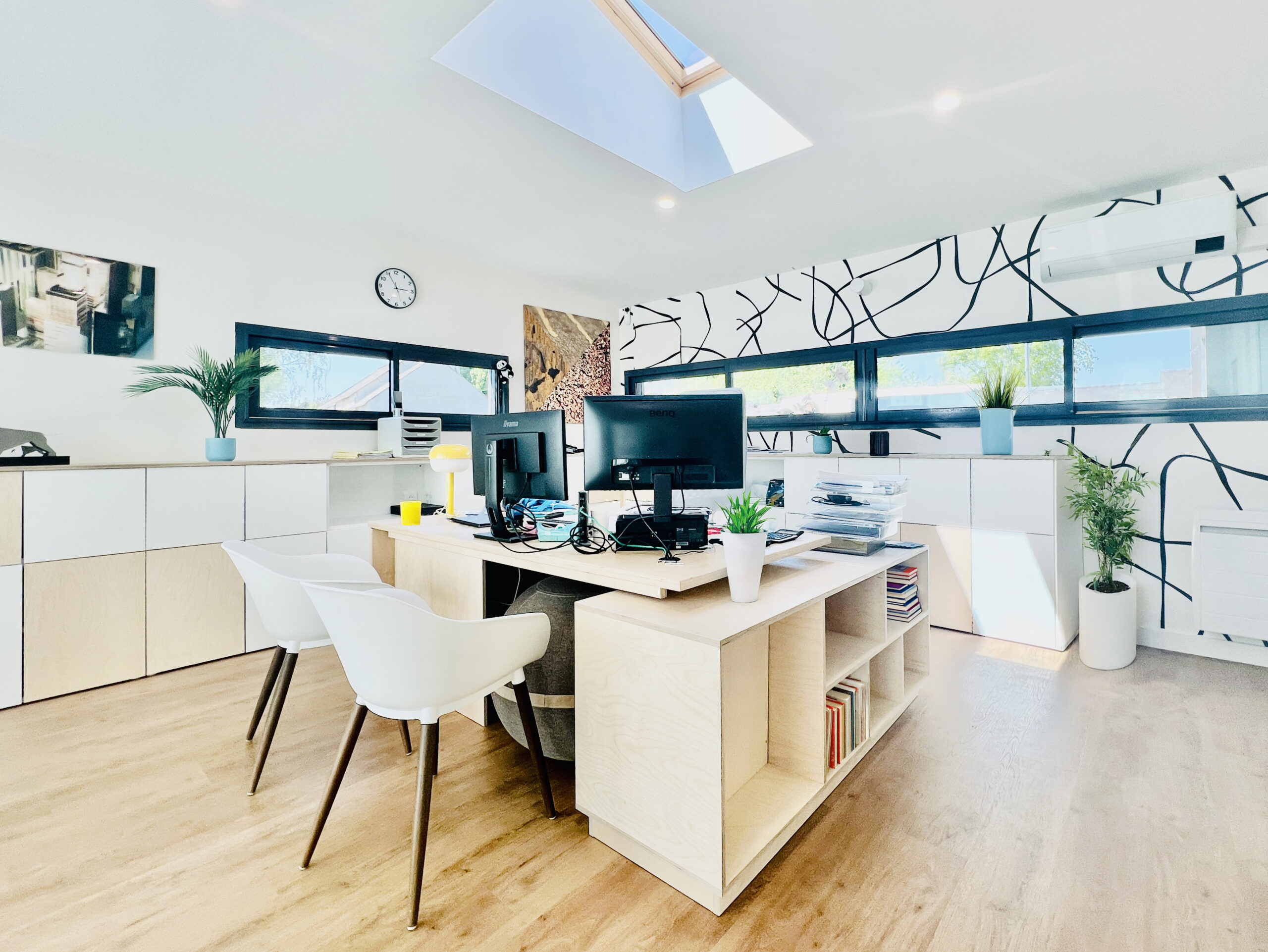 L’entreprise souhaite donner un nouveau visage à ses locaux en redessinant ses espaces bureaux et détente. Un grand espace détente, dessiné comme un vestiaire de rugby, permet d’offrir à l’équipe un espace de pause conviviale et collaboratif. Un nouveau bureau / salle de réunion est aménager à proximité de l’accueil. L’ensemble des mobiliers sont aussi remplacés.