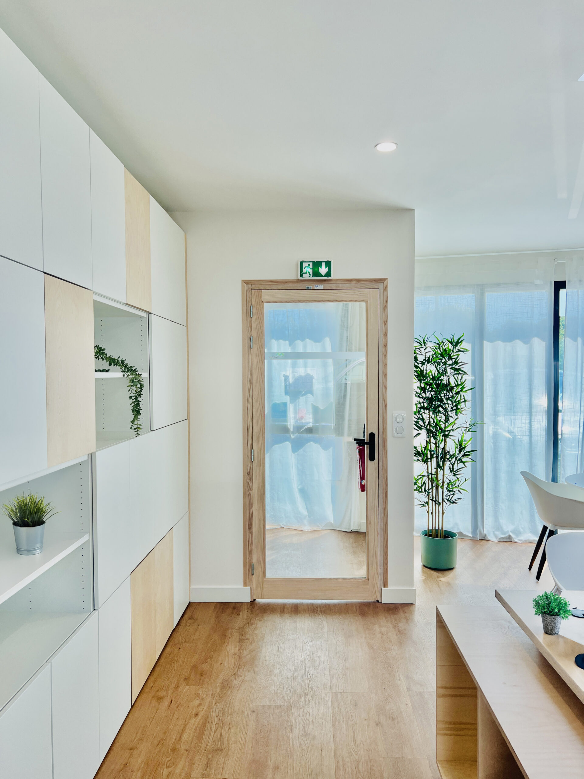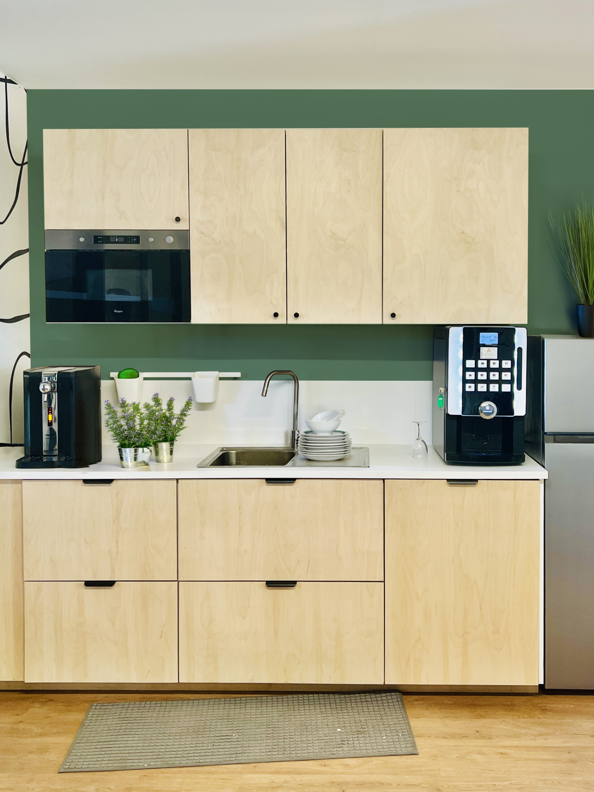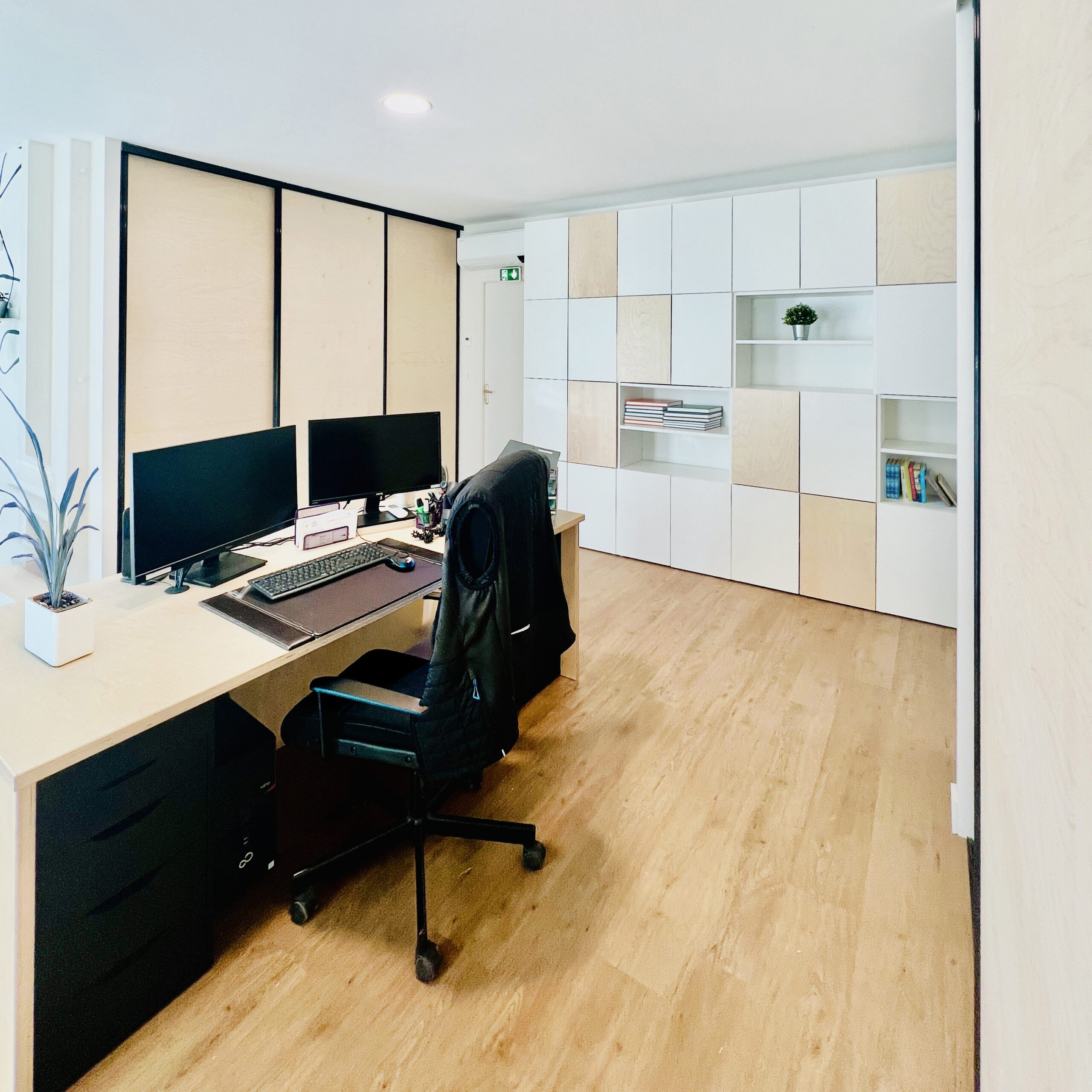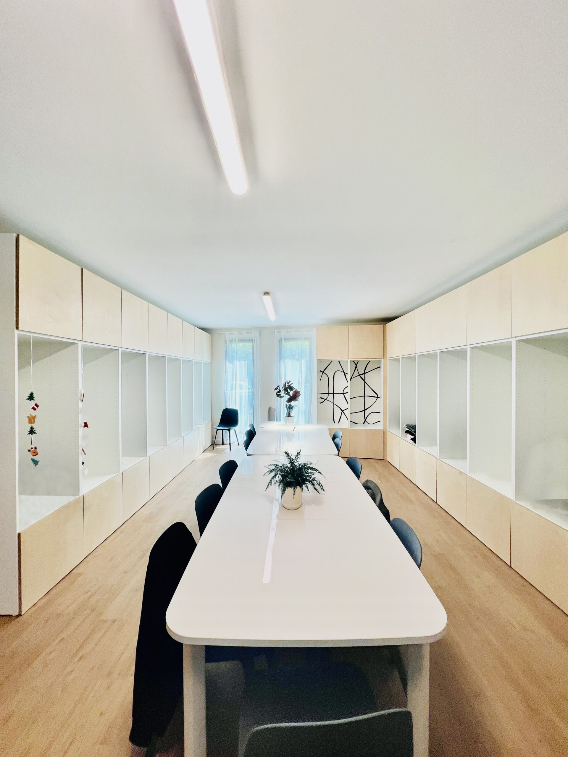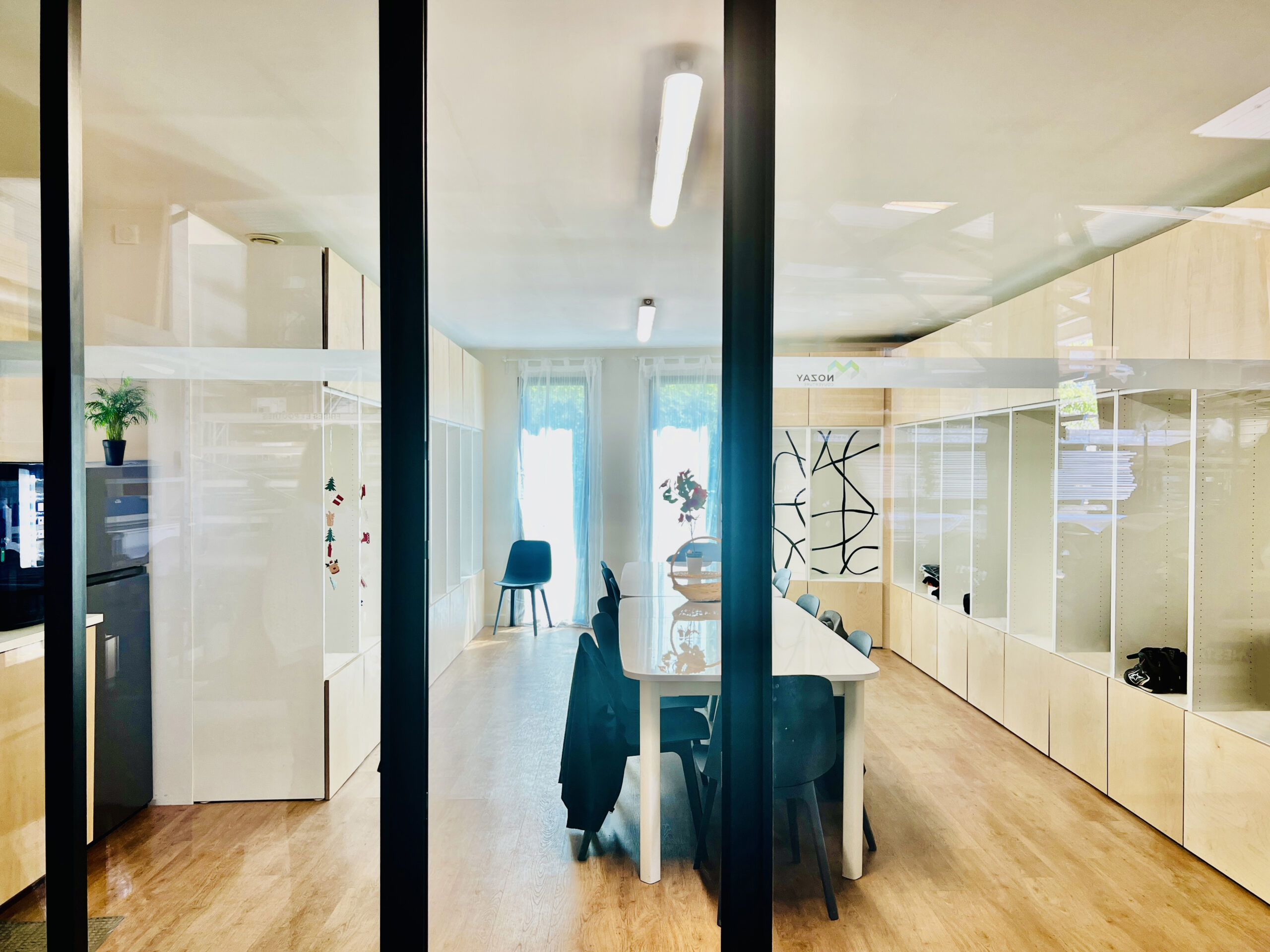 L’entreprise souhaite donner un nouveau visage à ses locaux en redessinant ses espaces bureaux et détente. Un grand espace détente, dessiné comme un vestiaire de rugby, permet d’offrir à l’équipe un espace de pause conviviale et collaboratif. Un nouveau bureau / salle de réunion est aménager à proximité de l’accueil. L’ensemble des mobiliers sont aussi remplacés.